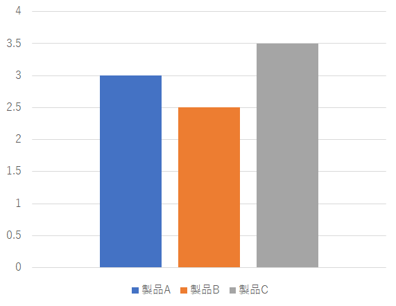 電池の耐久時間をテストした結果は、製品Aでは3時間、製品Bでは2.5時間、製品Cでは3.5時間でした。