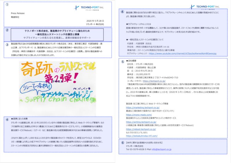 決まった形はないとも言われていますが、基本的な形をご紹介します。こちらは弊社が業務提携に際して配信したプレスリリースです。